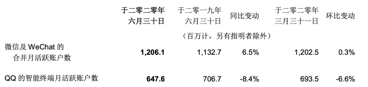 因此對于騰訊來說,微信(包括WeChat)用戶情況是支撐廣告收入的活水。第二季度微信及WeChat的MAU數(shù)為12.06億人,環(huán)比增長0.3%。