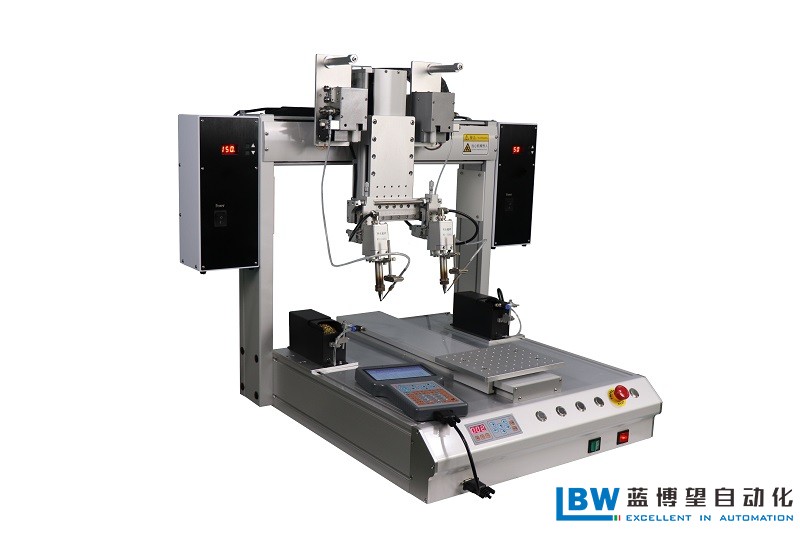 桌面烙鐵焊錫平臺Desktop Soldering Platform該多軸平臺結構緊湊成熟穩定可適應“焊錫,點膠,打螺絲”等多種用途,如各種電子元器件,電容、電阻、排針、排線、屏蔽蓋等穿插件,以及各類電子鏈接器,LED燈柱燈帶,視頻音頻線插頭,耳機線,電腦數據線,小型線路板及小型電子元器件的焊接等。雙Y軸工位異步焊接,效率翻倍。成熟穩定的手持式示教編程器。威樂式低頻加熱控制器,大功率高頻可選配。帶